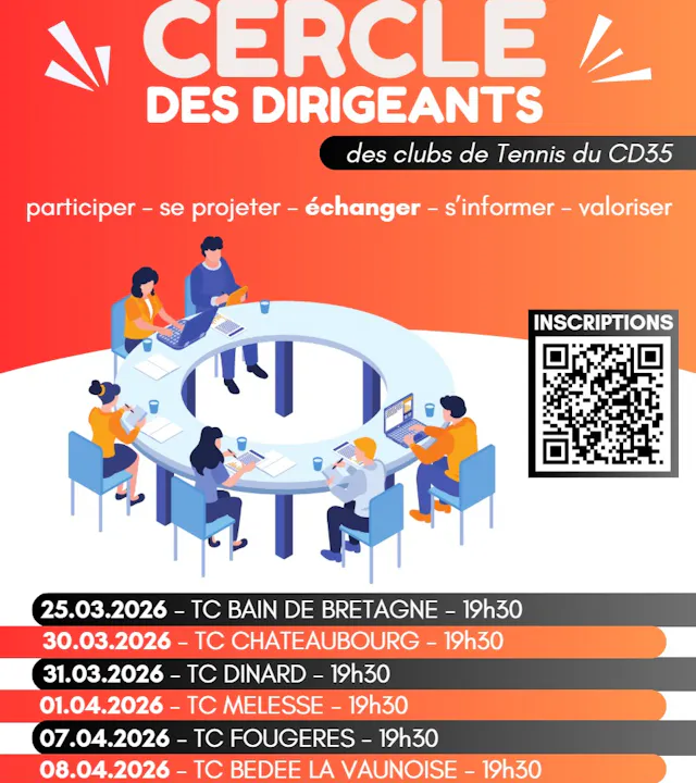 Nous vous proposons de venir participer à un moment d’échanges avec le Comité Tennis 35 (en collaboration avec la Ligue de Bretagne) autour de thématiques diverses (sportives, développement, vie de club, recrutement/fidélisation, RH) qui intéressent les clubs.